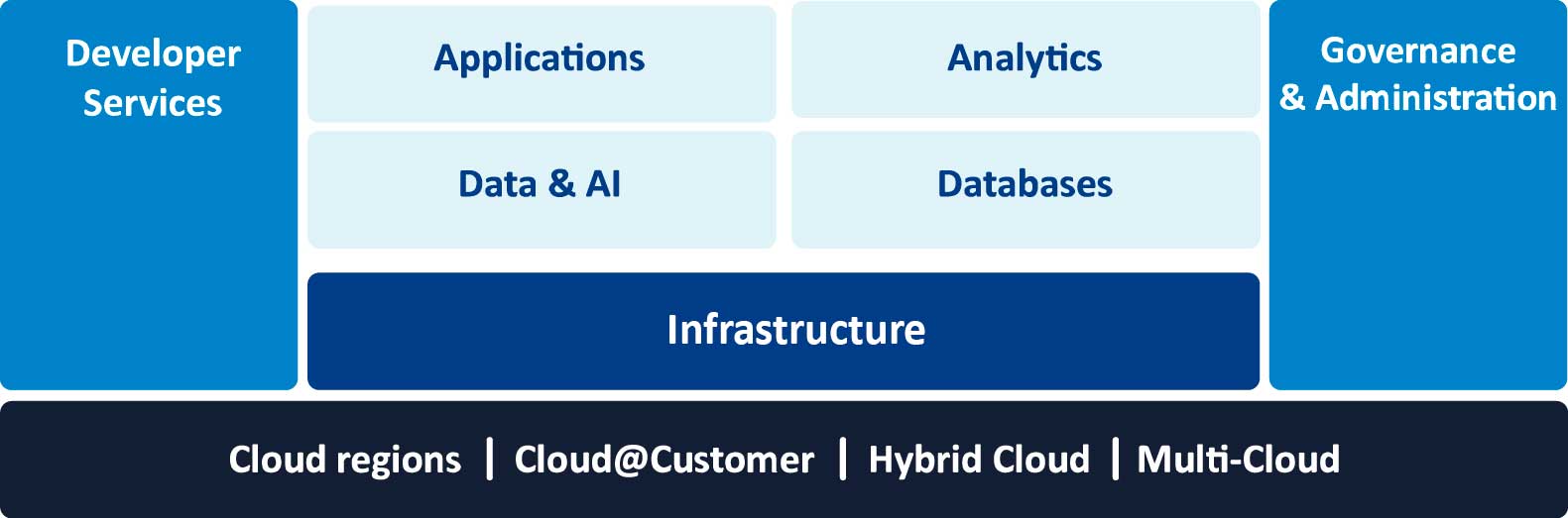 Es la infraestructura de próxima generación diseñada para ejecutar cualquier aplicación de manera más rápida y segura. OCI ofrece un conjunto común de más de 100 servicios en cada región de la nube. Esto incluye todo lo que necesitas, desde contenedores y VMware hasta IA, para migrar, modernizar, construir y escalar tu infraestructura de TI.